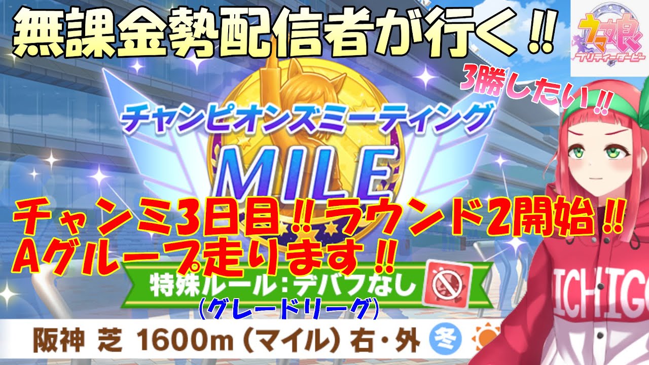 ウマ娘プリティーダービーのチャンピオンズミーティングMILE(阪神芝1600m阪神ジュベナイルフィリーズ)の3日目を走ります‼
